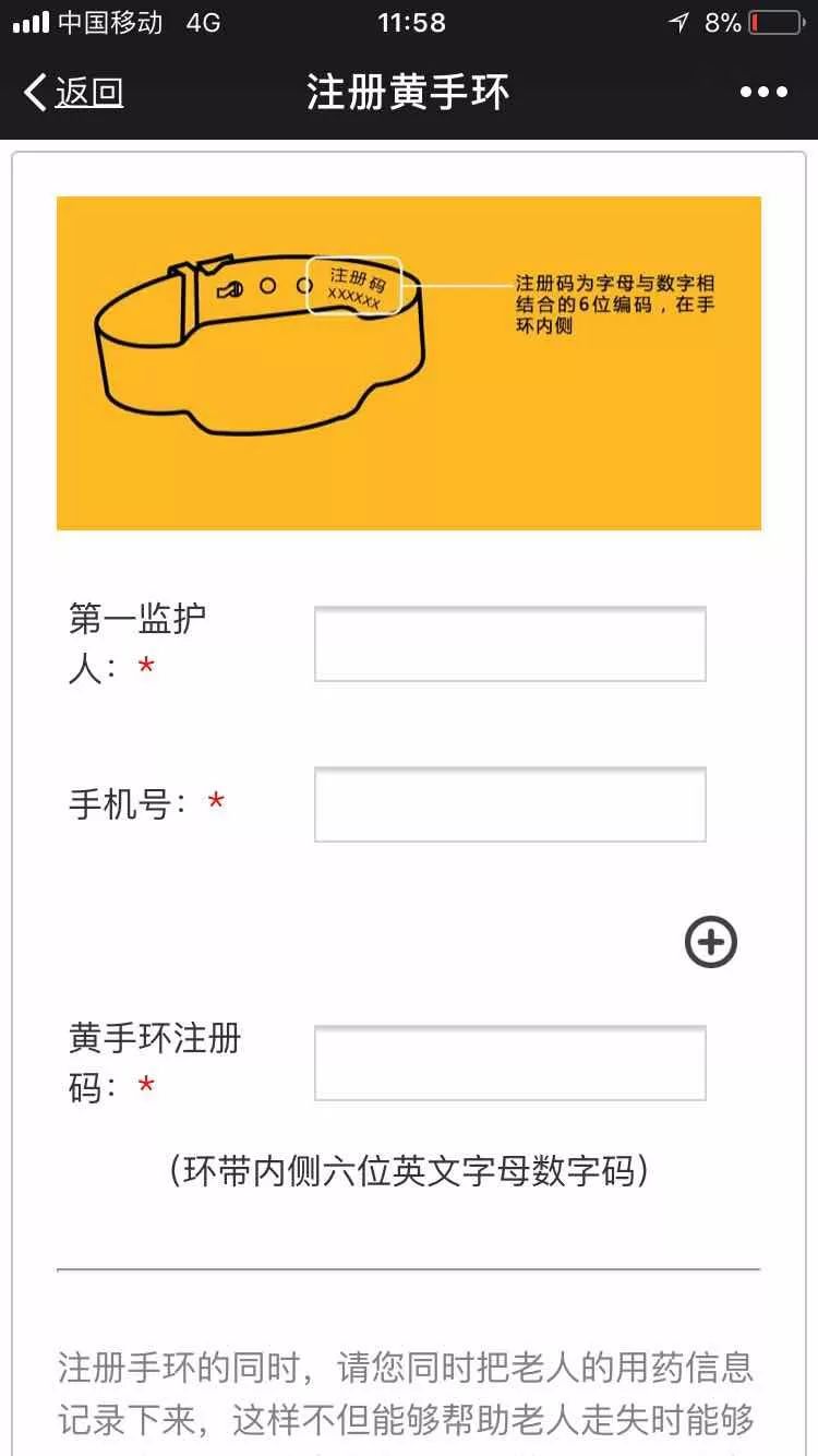 为了防止出现任何意外的情况,在注册完成之后,请再扫描一次手环上附二维码,再次确定信息录入成功。