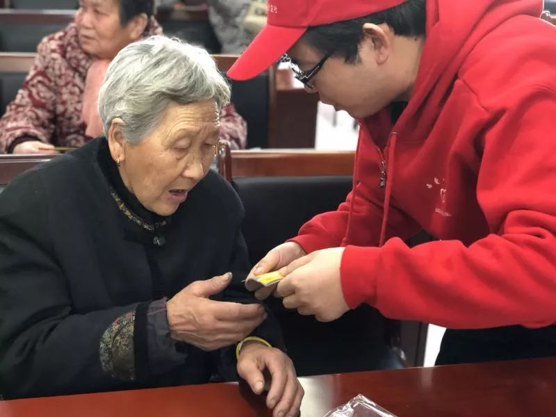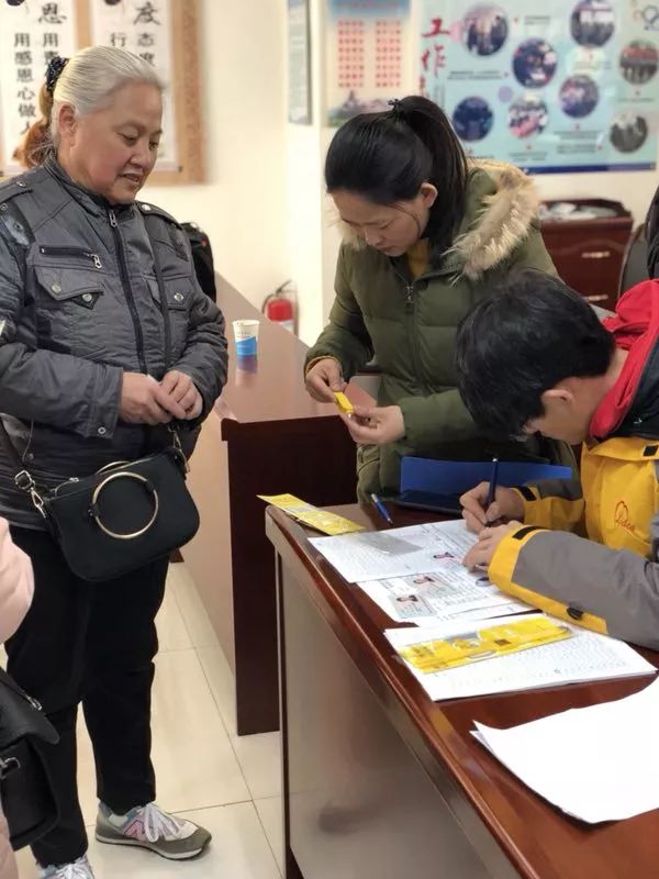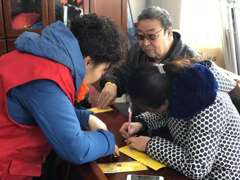 老人们按照我们的要求坐在座位上面,我们的志愿者们分成两组,给老人们发放黄手环。为了保证老人的信息准确无误的录入到黄手环里面,我们必须仔细的检查两边老人的证件号码、老人的姓名、联系方式、以及家人的信息,确保老人发生意外后可以在外界的帮助下,尽快找到家人。