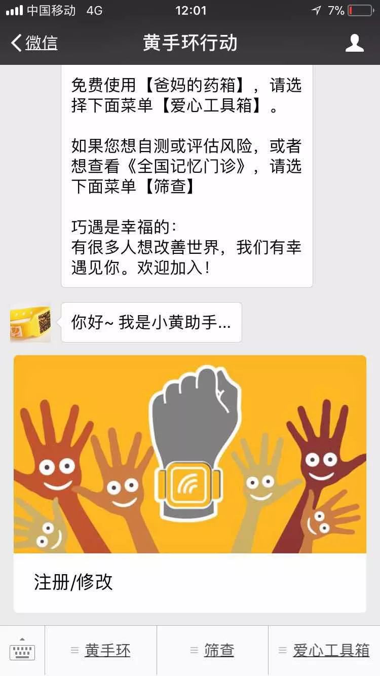关注黄手环行动(微信公众号)点击下方黄手环内注册/修改