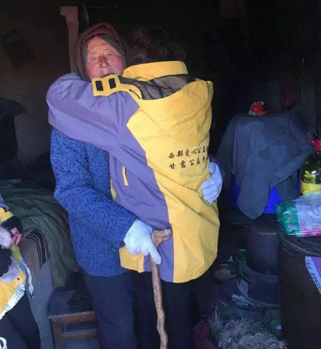 婆婆哭了,我们的志愿者看着婆婆生活的境况,也忍不住抱着婆婆留下眼泪!