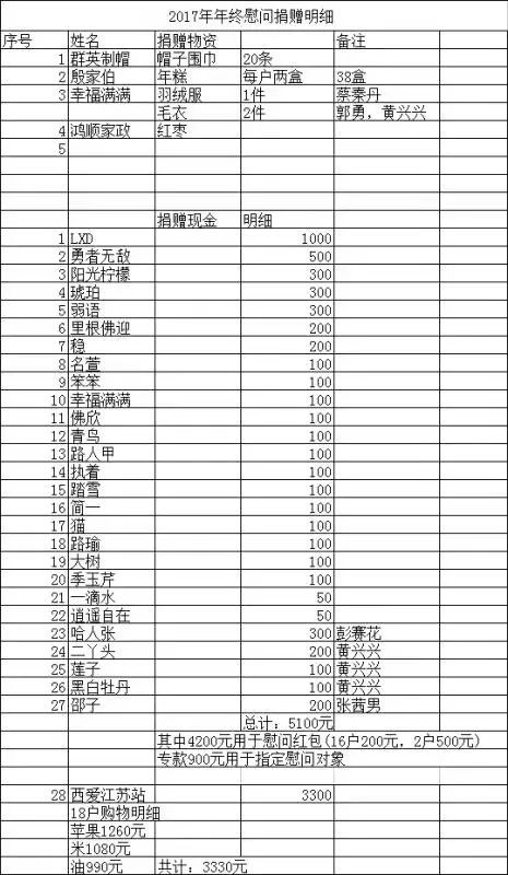 https://mmbiz.qlogo.cn/mmbiz_jpg/lPpU0ozG20VQmVeACp4jARyQyP5cra6b0RNC0WLV7tpDNhTD5Fnyupsn2OFHY1dcby8es8VScYgF4ToKDkBSKg/0?wx_fmt=jpeg2017年慰问捐赠明细: